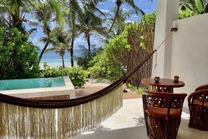 Nuestras 6 habitaciones Deluxe frente al mar ofrecen vistas increíbles e incluyen una alberca de privada al aire libre (climatizada en invierno y refrescante en verano) frente al mar, un patio con sofá, mesa y sillas y una hamaca para verdaderos momentos mexicanos.