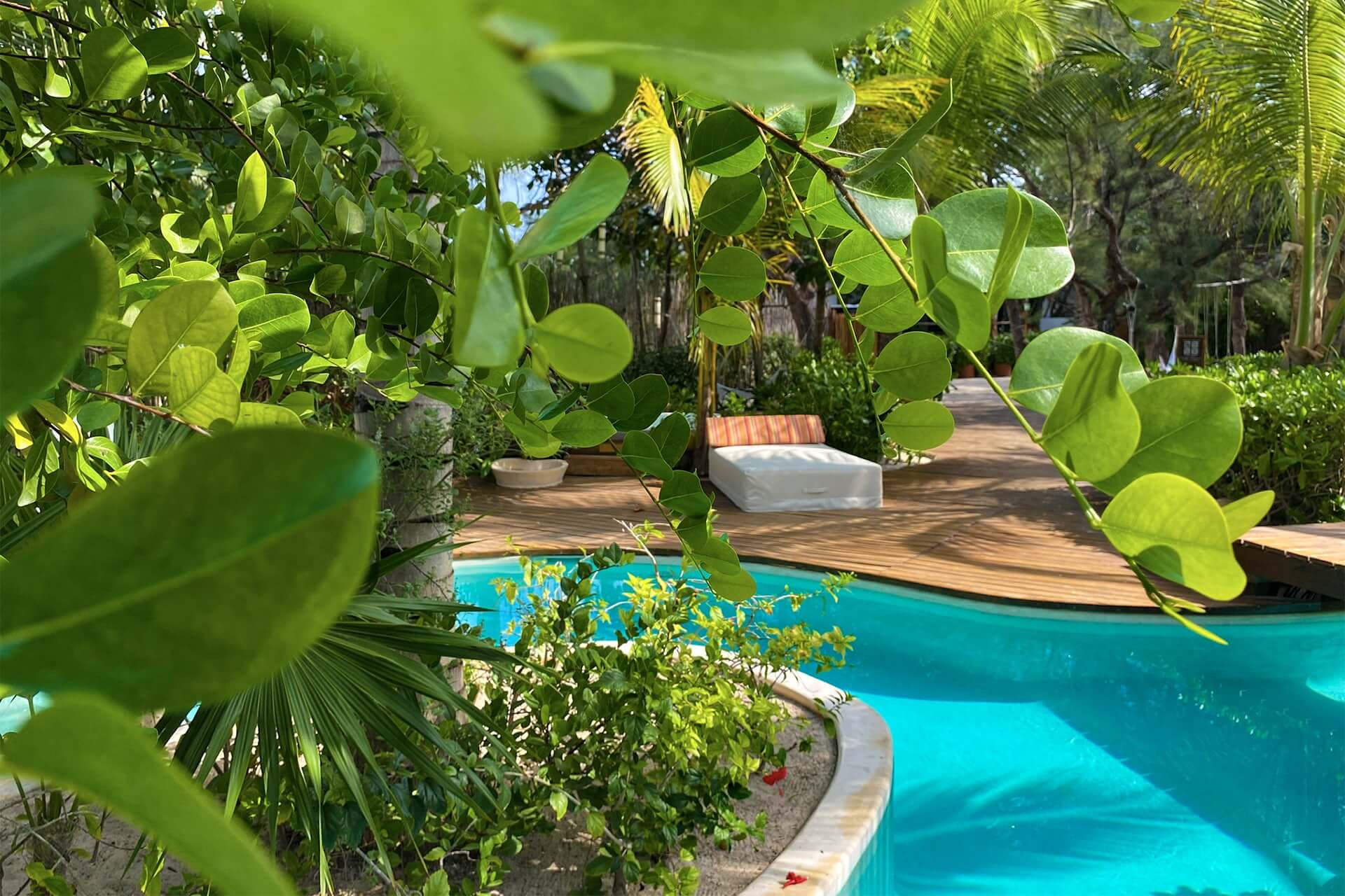 En un ambiente exclusivo, únicamente para nuestros huéspedes encontrará una cama de playa disponible solamente para usted, desde la cual puede ordenar durante el día, desde 9am a 6pm deliciosos cócteles o un almuerzo.