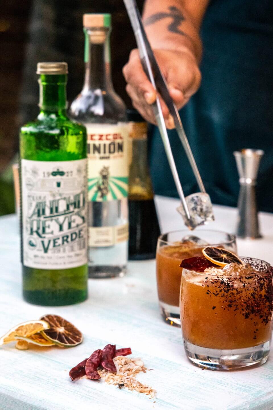 Bebidas elaboradas con ingredientes frescos, tropicales, además de una gran variedad de frutas y especias, licores de alto nivel y bebidas espirituosas mexicanas como Tequila, Mezcal y Pox.