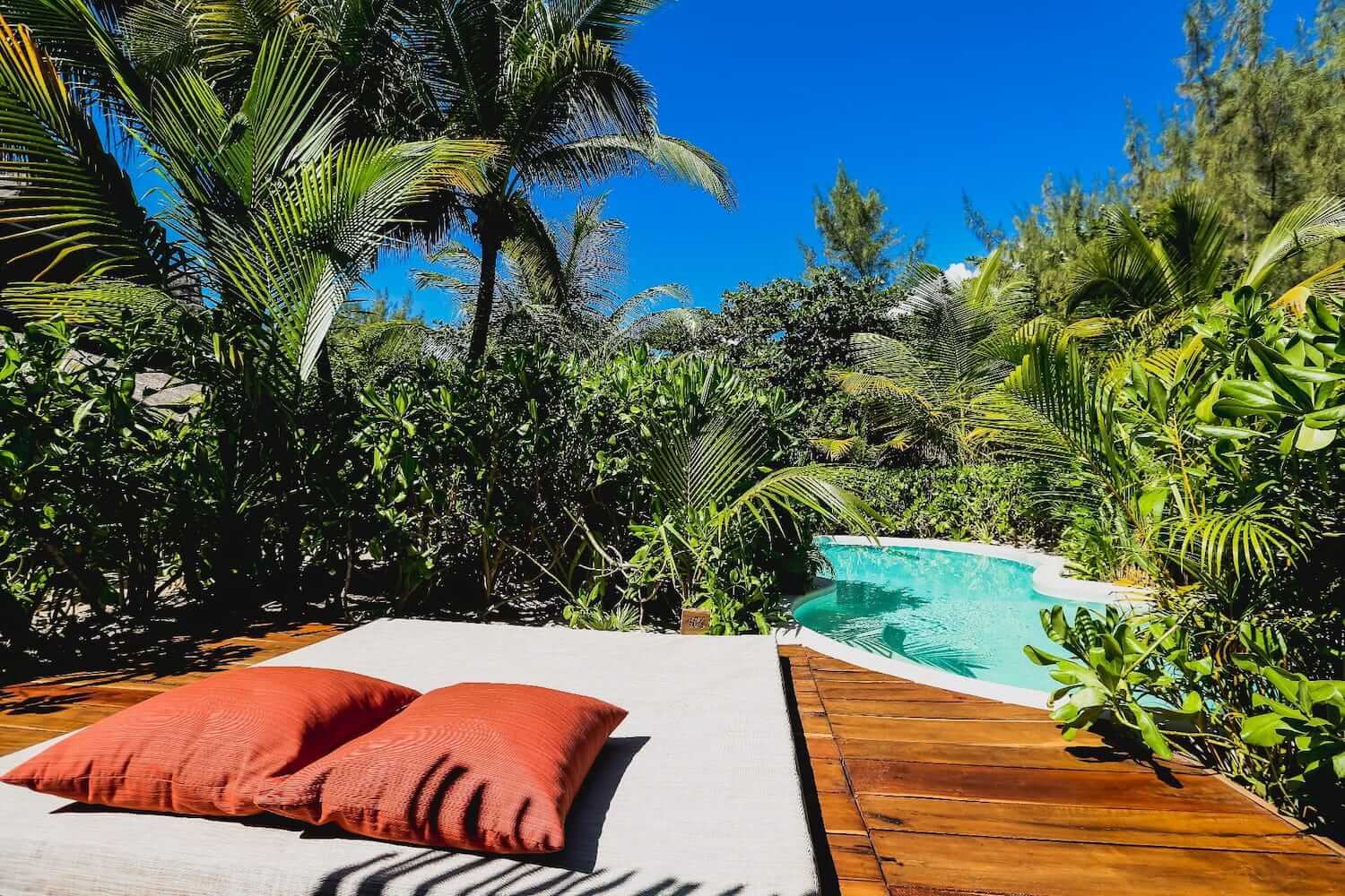 - Incluye desayuno, wifi, limpieza y cobertura diaria, agua embotellada, cama de playa privada, toallas de playa, bolsa de playa, chanclas.